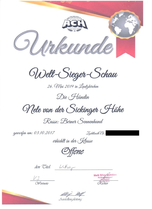 Hier die Urkunden der Ausstellungen