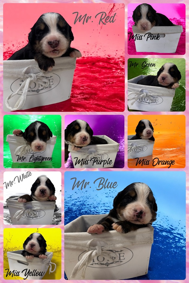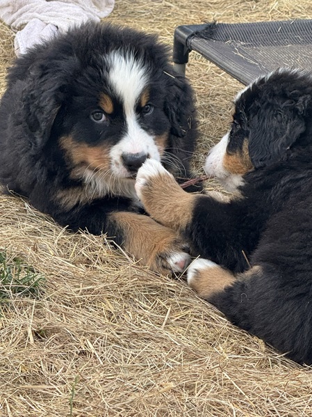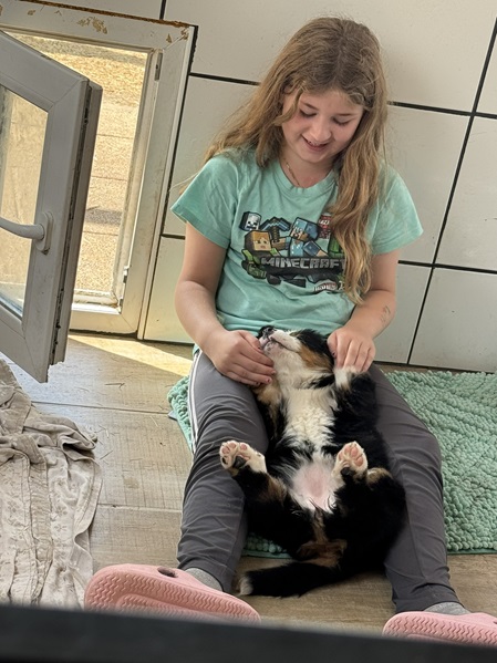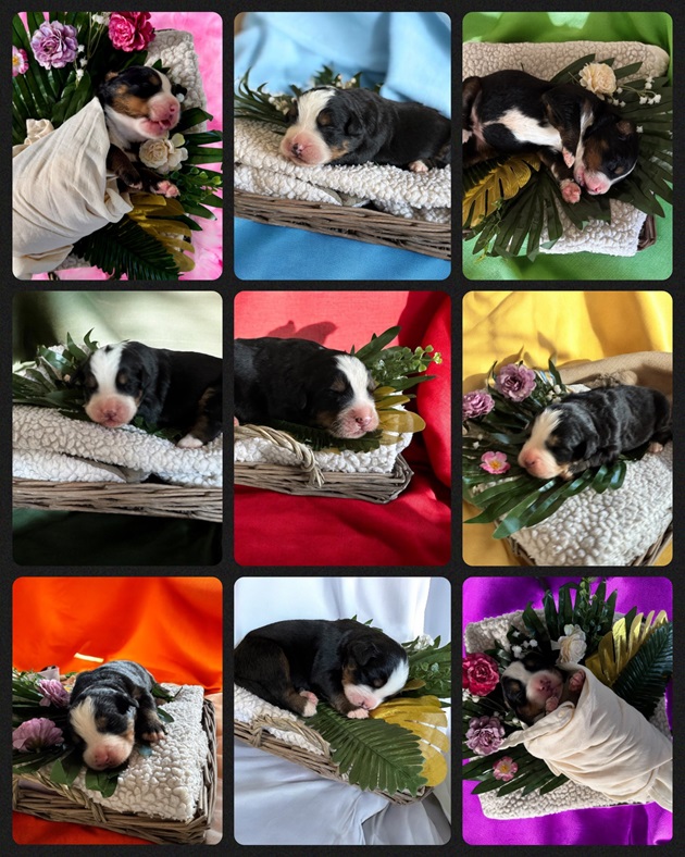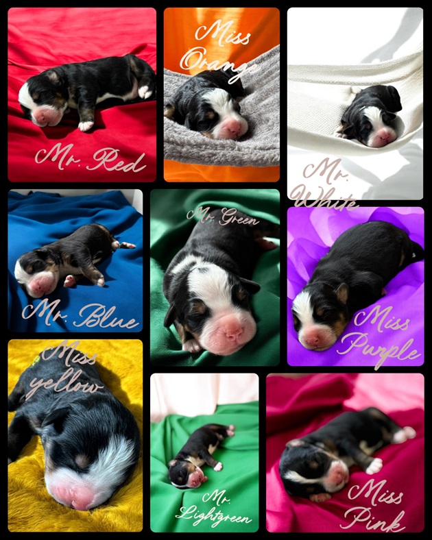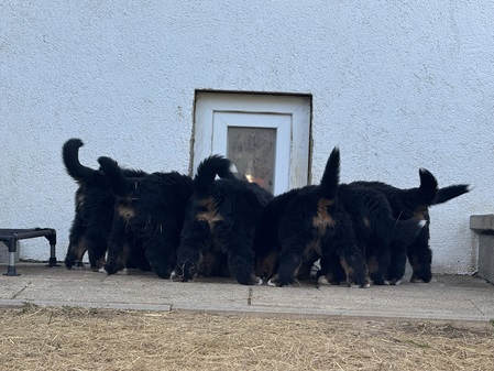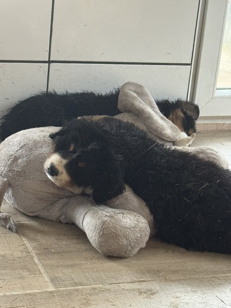 Nele hat die Geburt sehr gut überstanden und kümmert sich seither mit viel Ruhe und Hingabe um ihre Welpen.