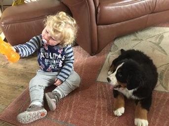 Unsere Tochter wollte am liebsten mit in die Wurfkiste. Die Jungs durften immer eine Hündin in den Armen halten.